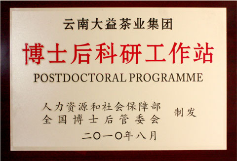 - 人力資源和社會保障部制發(fā) 大益茶葉集團博士后科研工作站