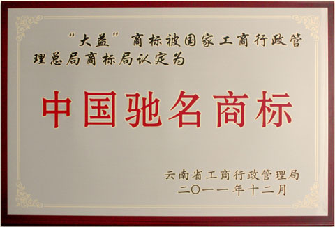 - 國家工商行政管理總局商標局認可,“大益”商標為中國馳名商標