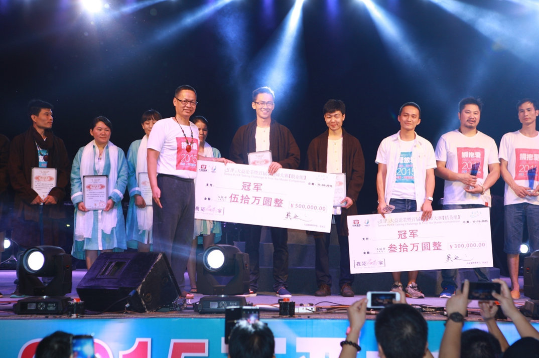 經(jīng)過(guò)連續(xù)四屆論茶比賽的摸索,大益茶道院于2015年正式推出“首屆職業(yè)茶道師大賽”,吸引了海內(nèi)外3000多名職業(yè)茶道師參加。9月15日,33名分賽區(qū)論茶冠軍齊聚勐海,參加了為期15天的茶道特訓(xùn)營(yíng)。選手們通過(guò)強(qiáng)化訓(xùn)練和考試,順利進(jìn)階為二階職業(yè)茶道師,其中的16強(qiáng)選手在論茶晉級(jí)賽中成功突圍。10月17日,“首屆職業(yè)茶道師大賽總決賽”在三亞舉辦,16名“高手中的高手”進(jìn)行巔峰對(duì)決。選手們不僅品茶功夫高超,而且能在限定時(shí)間內(nèi)創(chuàng)作出精美絕倫的茶席作品,體現(xiàn)了一名職業(yè)選手超強(qiáng)的綜合能力。最終,來(lái)自廣東的茶道師高金龍以論茶和茶席設(shè)計(jì)總分第一的成績(jī)摘取桂冠,奪得50萬(wàn)元現(xiàn)金大獎(jiǎng)!同時(shí)總決賽前八強(qiáng)也榮耀晉升為首批三階職業(yè)茶道師。