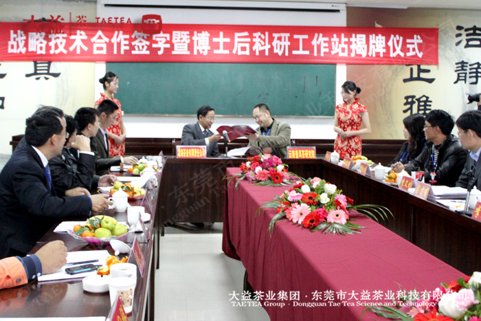 2010年,經(jīng)國(guó)家人力資源與社會(huì)保障部、全國(guó)博士后管理委員會(huì)批準(zhǔn),云南大益茶業(yè)集團(tuán)博士后科研工作站成立。云南大益茶業(yè)集團(tuán)博士后科研工作站的技術(shù)研究,立足解決普洱茶發(fā)展的重大關(guān)鍵共性技術(shù)問題,加強(qiáng)產(chǎn)學(xué)研結(jié)合,與相關(guān)科研院所進(jìn)行技術(shù)戰(zhàn)略合作,引進(jìn)博士,整合科研資源,利用我公司在普洱茶生產(chǎn)、產(chǎn)品開發(fā)、技術(shù)研發(fā)等方面的優(yōu)勢(shì),解決企業(yè)發(fā)展中的重大關(guān)鍵性技術(shù)問題,并使科研成果迅速產(chǎn)業(yè)化,推動(dòng)公司及茶產(chǎn)業(yè)的技術(shù)進(jìn)步。