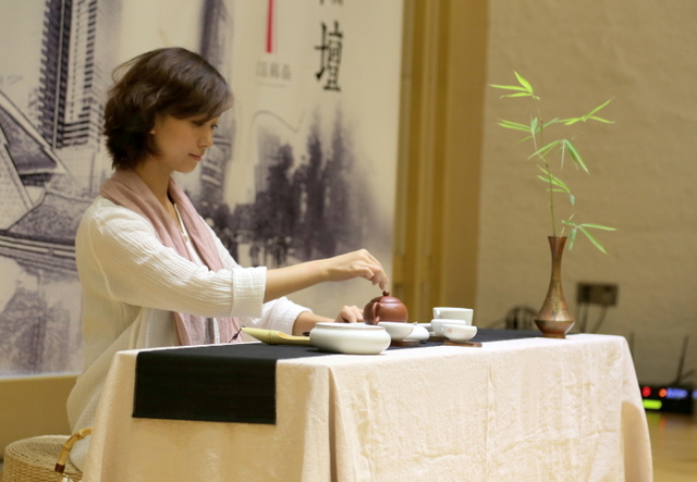 大益茶道院老師在“兩岸文化交流論壇”上演示大益八式